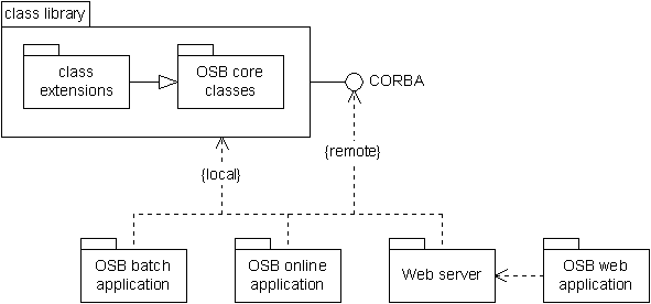 Batch applications normally make direct use of the OSB library. For performance reasons the CORBA interface should be used only sparingly, typically to forward the processing of bulk data to another server.